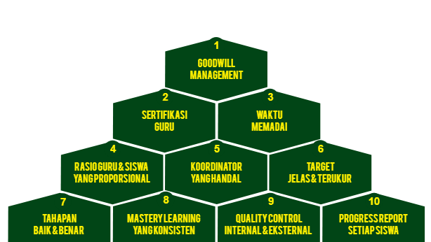 Koordinator yang Handal — Pengalaman dari banyak lembaga pendidikan menunjukkan bahwa koordinator Al-Quran sangat menentukan keberhasilan pembelajaran Al-Quran di lembaga tersebut. Pembelajaran Al-Quran yang hasilnya baik hampir dapat dipastikan bahwa koordinatornya juga baik atau handal dan sebaliknya banyak masalah mutu dalam pembelajaran Al-Quran yang sumber masalahnya adalah dari kurang berfungsinya koordinator. Jadi koordinator yang handal adalah salah satu pilar kunci yang mempengaruhi optimalisasi fungsi pilar-pilar mutu lainnya.